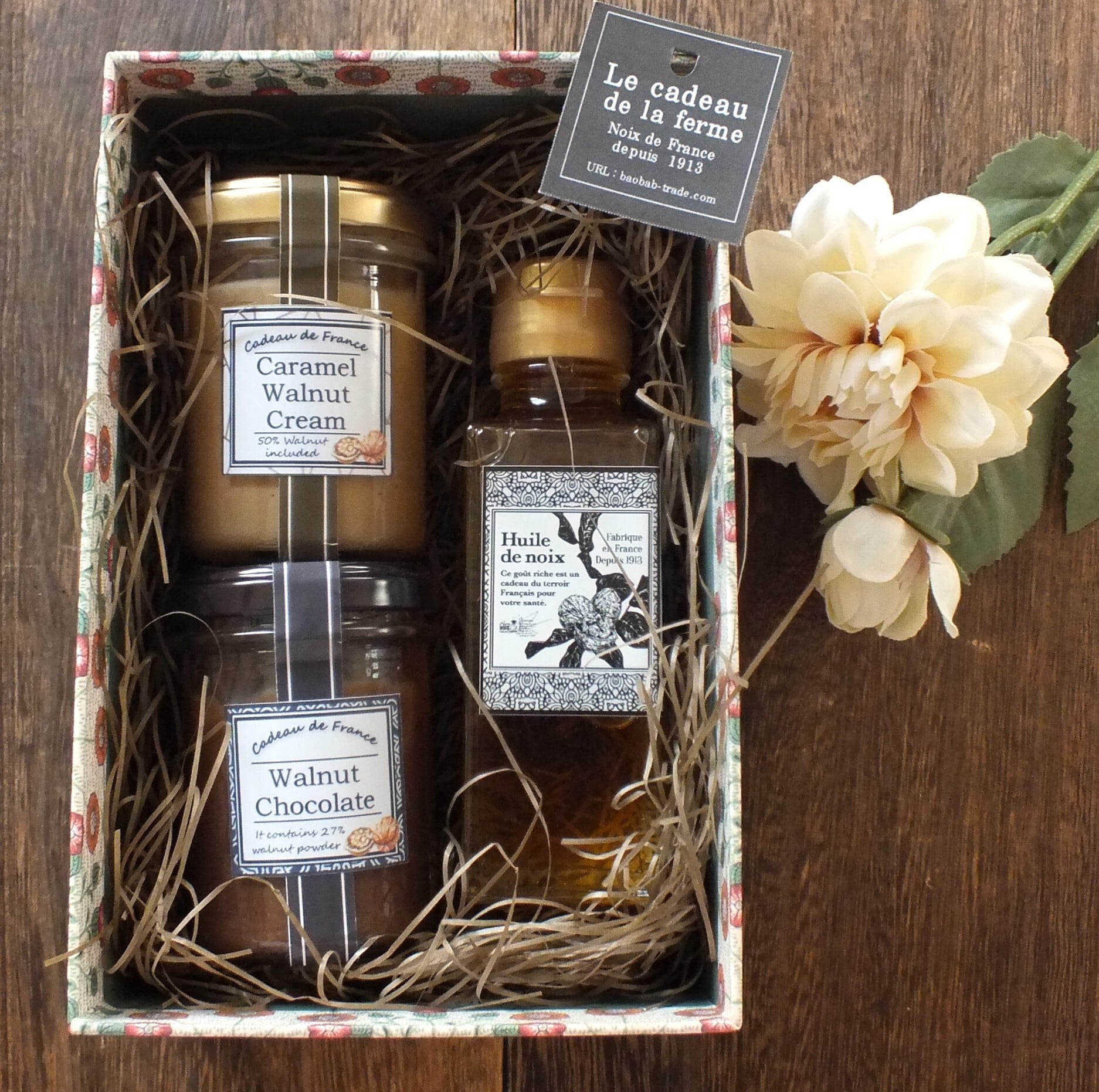 珍しい味わいの 【くるみキャラメルクリーム】や【くるみチョコスプレッド】との組み合わせは、パンが好きな方に喜んでいただけるギフトになります。